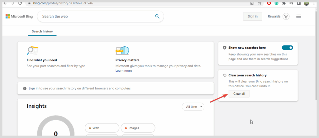 但是,如果您不希望这些公司跟踪您怎么办?您需要删除您的浏览历史记录。此外,不要删除您的 Bing 历史记录会减慢您的浏览速度并使您的体验变得糟糕。