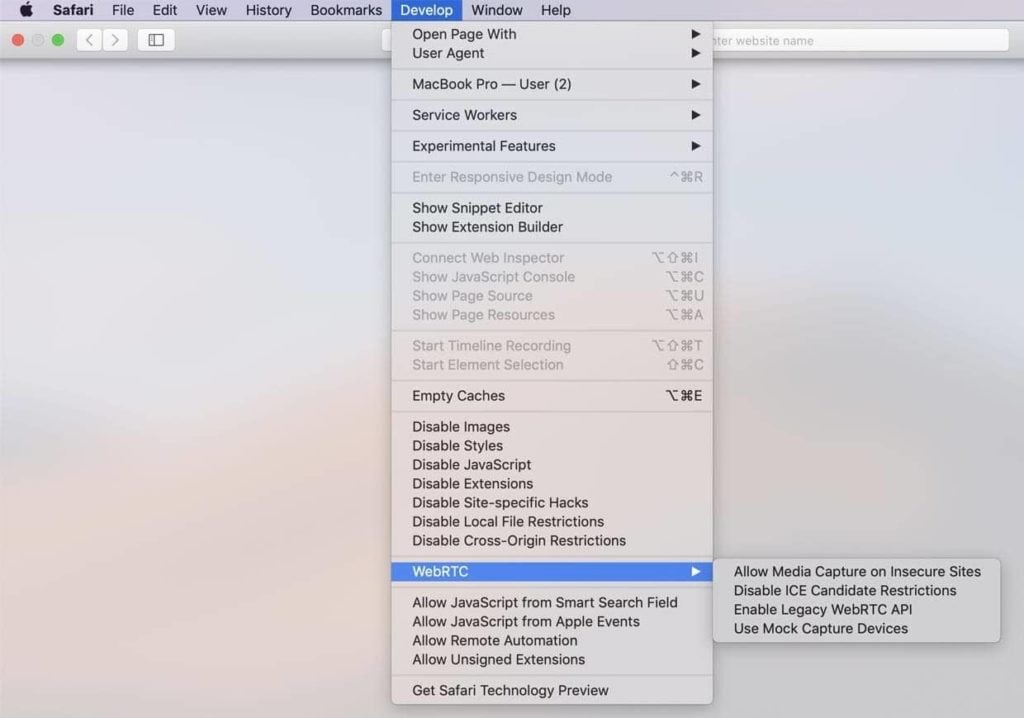 在 Safari 上禁用 WebRTC