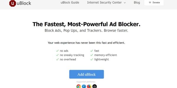 - uBlock起源– 它是一种轻量级且高效的广告拦截解决方案,对您的系统影响很小。
