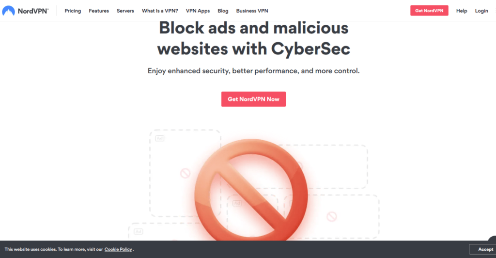 网络安全是那阻止广告、恶意软件、跟踪器,以及其他互联网上的肮脏行为。它包含在 NordVPN 订阅中,并在后台悄悄运行以阻止浏览器和应用内广告。
