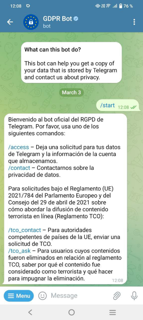 因为Telegram 遵守 GDPR 法律由欧盟于 2018 年创建,您有权了解他们从您那里收集的数据以及收集的情况(GDPR 艺术。 15)。