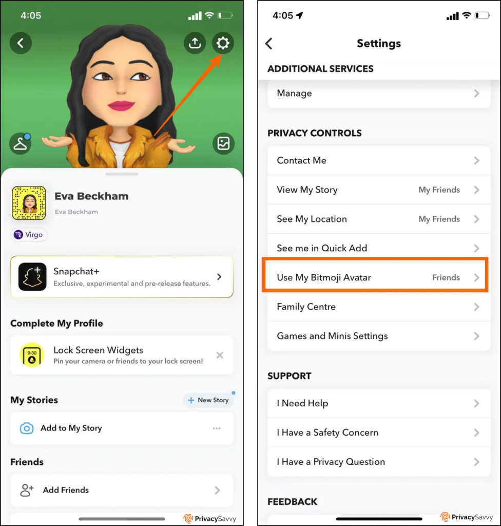 - 在“隐私控制“ 部分,轻敲“使用我的 Bitmoji 头像”。