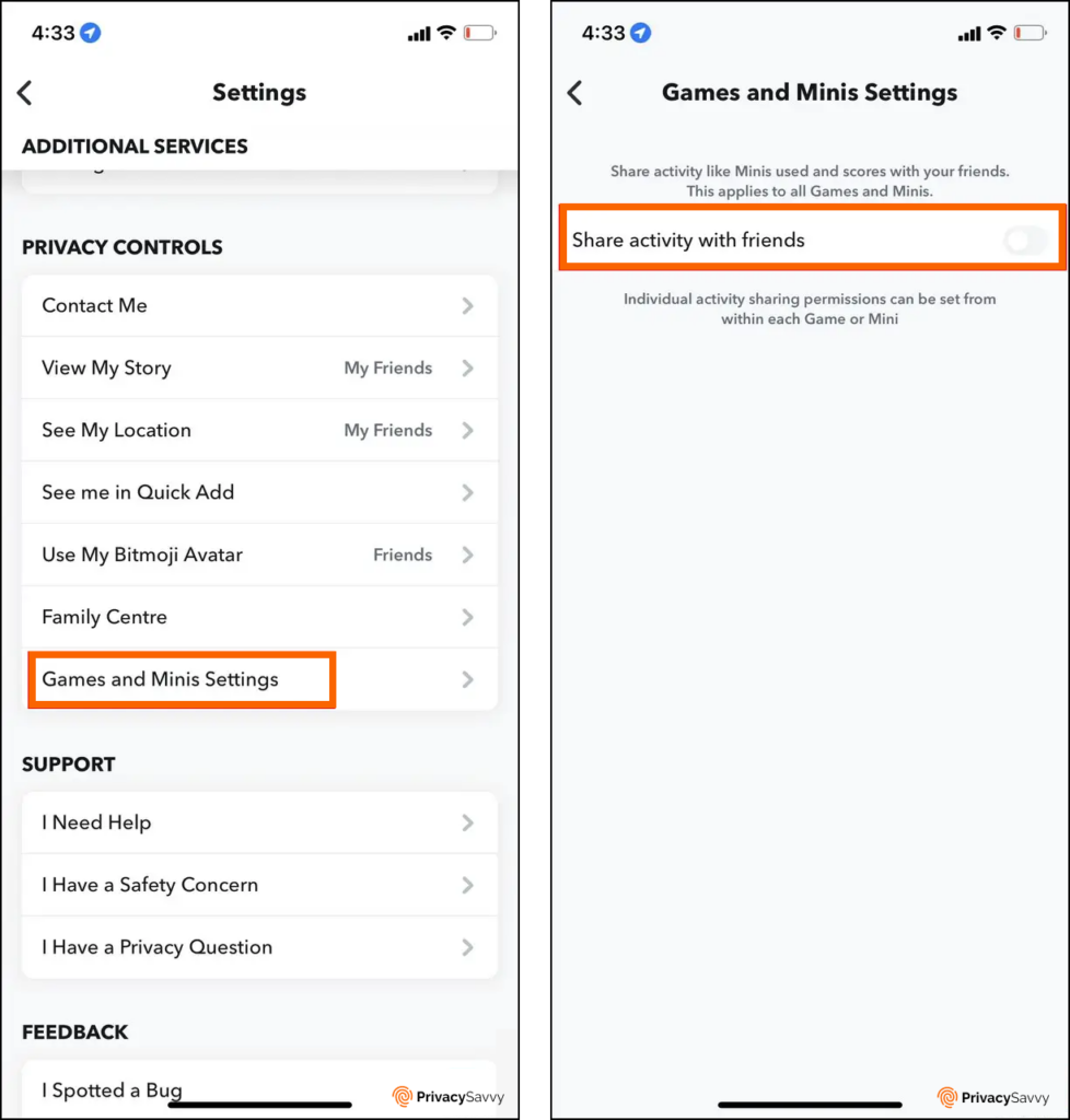 - 前往 设置在应用程序上,以及在“隐私控制“ 部分,轻敲在 ”游戏和迷你游戏“ 设置。