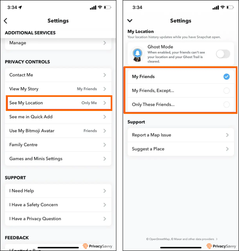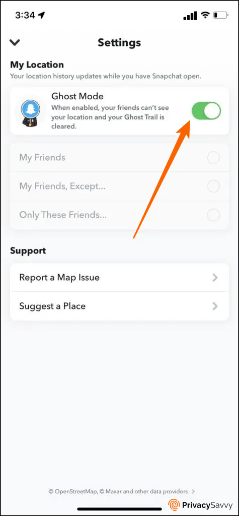 - 第四个也是最后一个选项。 “幽灵模式” 确保没有人知道您的位置。