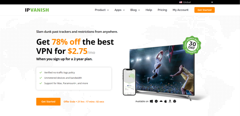 很遗憾,IPVanish 没有免费服务或 7 天免费试用。最接近的选择是 30 天退款保证。它允许您测试 VPN 30 天,如果您认为这最适合您,则可以收回付款。所以,不涉及财务风险第一个月使用 IPVanish。
