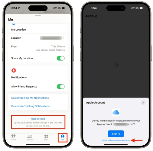 步骤2:选择我从下面的菜单中点击帮助朋友轻敲使用另一个苹果帐户。