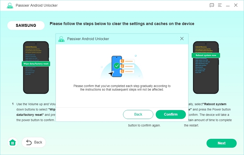 按照给定的步骤清除手机的设置和缓存。单击[确认]按钮。