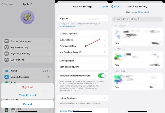 第5步:「购买记录检查是否有任何未付费项目或未付费订阅费用。