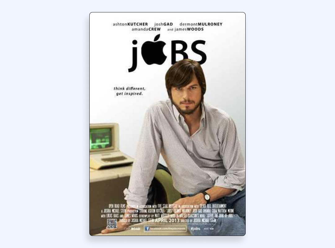阿什顿·库彻在这部传记片中扮演史蒂夫·乔布斯,讲述了苹果公司从车库到全球巨头的历程。它凸显了乔布斯在个人电脑革命之旅中对创新和完美的不懈追求,并展示了使他成为一个富有远见和两极分化的人物的品质。
