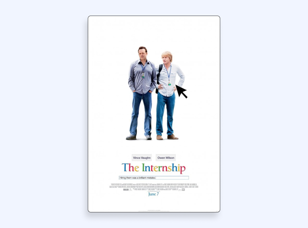 这部情节曲折的喜剧由文斯·沃恩和欧文·威尔逊主演,讲述了两名苦苦挣扎的中年推销员试图通过在谷歌实习进入科技世界的故事。它轻松愉快又牵强附会,涉及适应数字化颠覆、团队动力和新鲜视角的价值——所有这些都包含在谷歌光泽的视觉效果中。