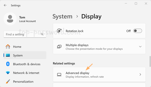 - 单击“先进的显示“相关设置”部分下的“选项。