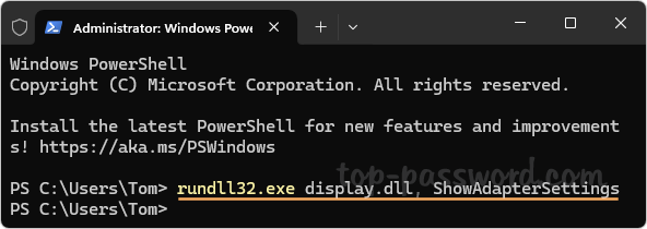 rundll32.exe display.dll, ShowAdapterSettings