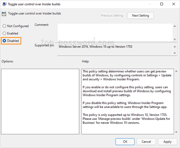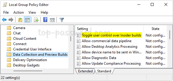 方法 1:使用组策略禁用 Windows Insider 程序设置