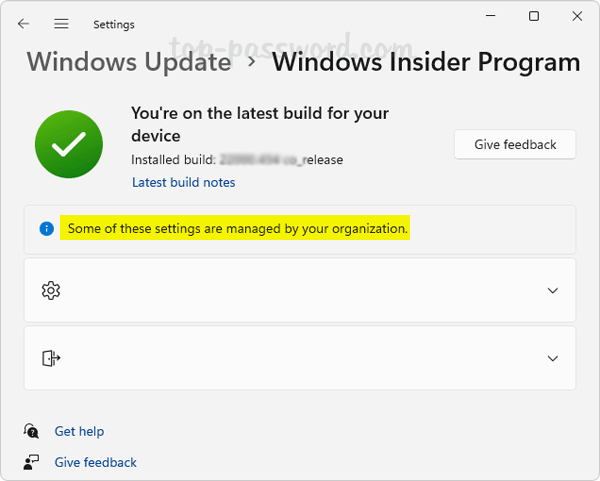 Windows Update -> Windows Insider Program,您会发现大多数设置不再可供用户使用。