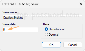 - 将其值数据设置为 0 以打开标题栏窗口抖动,或者如果要关闭该功能,请将其设置为 1。