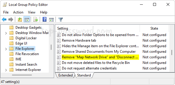 User Configuration -> Administrative Templates -> Windows Components -> File Explorer。在右侧窗格中,双击名为“删除映射网络驱动器并断开网络驱动器”策略来编辑它。