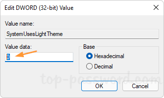 - 要完全开启深色模式,只需更改两者的数值数据即可应用程序使用LightTheme和系统使用LightTheme至 1。