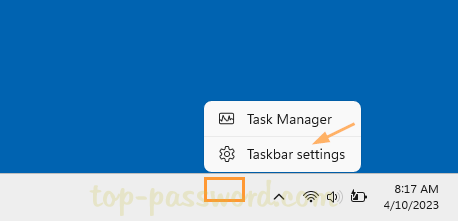 - 右键单击任务栏的空部分,然后选择“任务栏设置”弹出菜单。