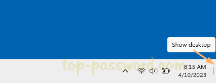 - 关闭注册表编辑。此更改将立即生效,您会发现任务栏缺少Show Desktop按钮。