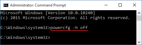 如果要禁用Hibernate,只需键入此命令,然后按Enter。该系统将自动删除Hiberfil.sys文件。