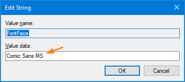 - 在框中输入您喜欢的字体名称价值数据框并单击好的。