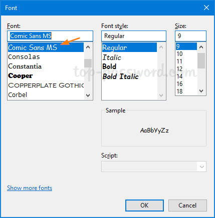 提示:打开文件资源管理器并浏览到 C:\Windows\Font 文件夹,您可以找到当前系统上安装的任何字体的名称。