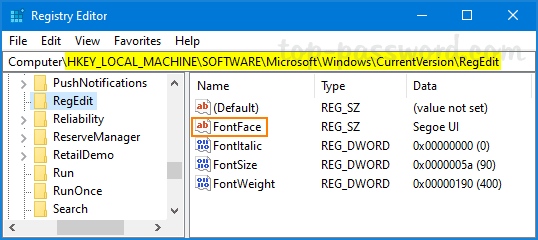 如何更改注册表编辑器应用程序本身的默认字体样式或大小?从 Windows 10 build 14986 开始,注册表编辑器允许您更改字体大小或自定义字体。在本教程中,我们将向您展示 2 种更改 Windows 10 中所有用户帐户的注册表编辑器字体的简单方法。