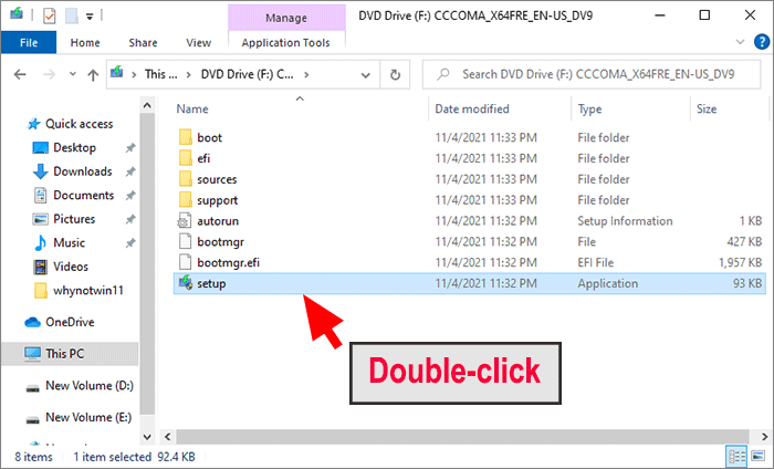 步骤3:转到安装驱动器找到安装文件并双击它。