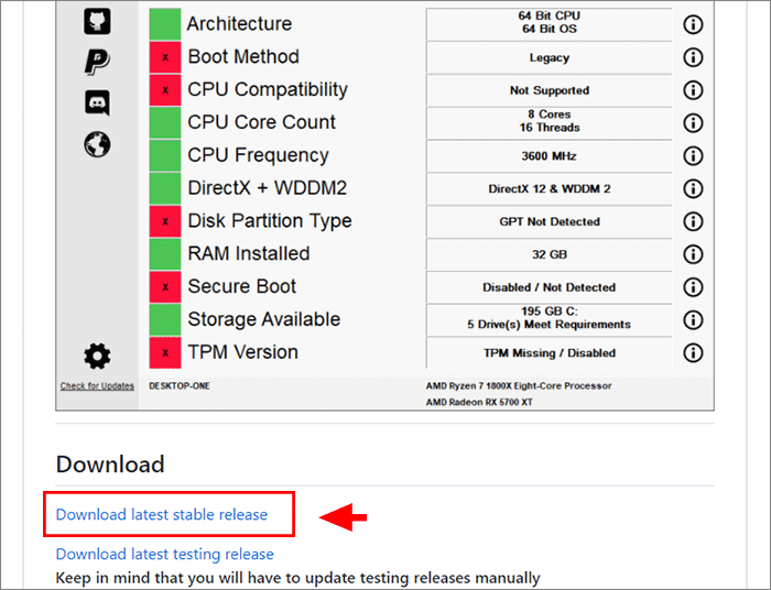 步骤一:访问网站:https://github.com/rcmaehl/WhyNotWin11,然后跳过鼠标到达下载部分。单击下载最新稳定版本。