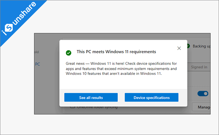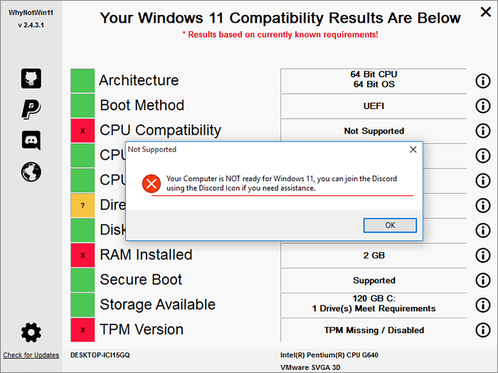 步骤3:然后这个应用程序将自动运行以检查您的电脑是否满足Windows 11系统要求。如果您的计算机已准备好运行 Windows 11,您将看到“支持”弹出窗口。