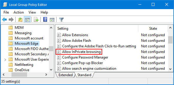 方法 1:通过组策略禁用 Microsoft Edge InPrivate 浏览