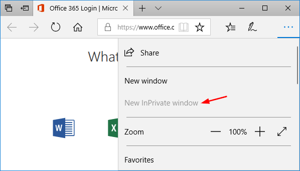 - 现在,打开 Edge 浏览器。单击更多行动按钮(三个点)。当出现下拉菜单时,标记为新的 InPrivate 窗口将显示为灰色。