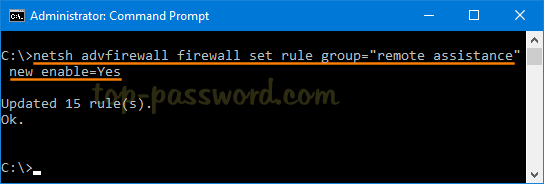 netsh advfirewall firewall set rule group="remote assistance" new enable=Yes