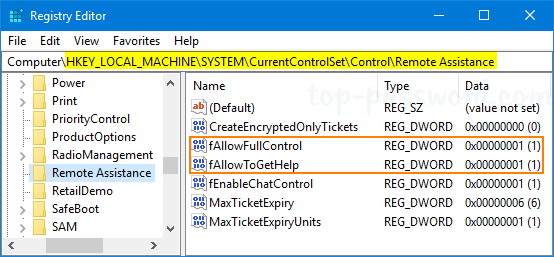 HKEY_LOCAL_MACHINE\SYSTEM\CurrentControlSet\Control\Remote Assistance - 要启用远程协助,请双击 DWORD 条目f允许获取帮助在右侧窗格中,将其值数据设置为 1。如果要禁用远程协助,只需将其更改为 0。