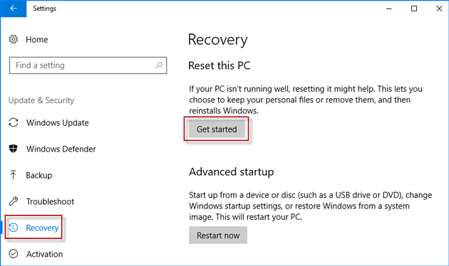 如果 Alt + F10 键对您的 Acer 笔记本电脑不起作用,或者您必须登录 Windows 10 以在恢复出厂设置之前备份重要文件,您可以通过登录将您的 Acer 笔记本电脑恢复出厂设置。但如果您没有密码或忘记密码而无法登录Windows 10,则必须先删除密码,然后登录Windows 10进行恢复出厂设置。步骤如下: