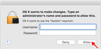 步骤 4:输入 Mac 管理员的用户名和密码。