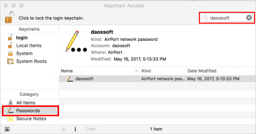 第 2 步:点击密码在“类别”部分的选项卡上,查找 Wi-Fi 网络的名称。