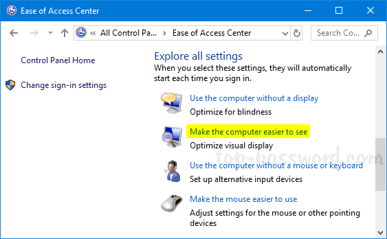 - 在“浏览所有设置”部分下,单击“让电脑更容易看到“ 关联。
