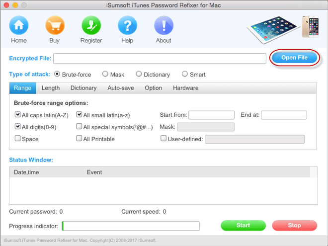 获取适用于 Mac 的 iTunes 密码修复程序。在 Mac 上安装并运行它,您需要在其中恢复 iPhone 的 iTunes 备份密码。