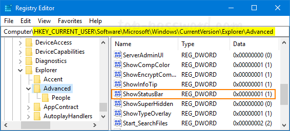 HKEY_CURRENT_USER\Software\Microsoft\Windows\CurrentVersion\Explorer\Advanced