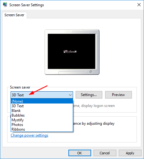 - 启动“屏幕保护程序设置”对话框后,您可以自定义屏幕保护程序并更改激活屏幕保护程序之前的空闲时间。如果你想关闭屏幕保护,只需将屏幕保护设置为没有任何并取消选中该框以恢复时显示登录屏幕。
