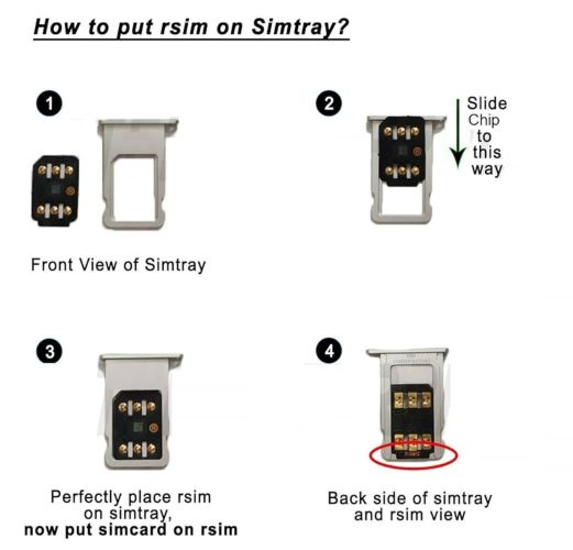 步骤1。将 R-SIM 芯片与新 SIM 卡一起放入 iPhone 的 SIM 卡托盘中。