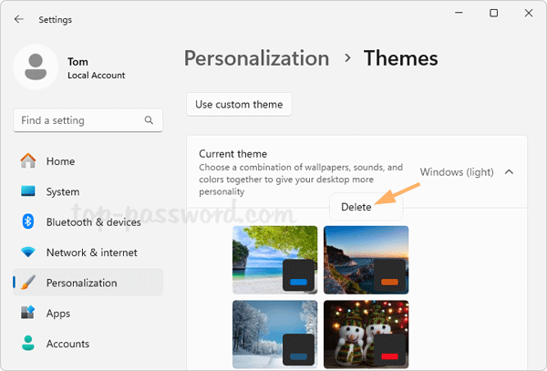 方法3:删除Windows 11上的内置主题