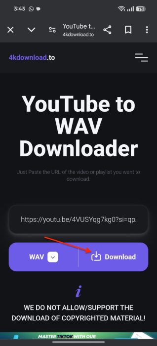 - 单击下载按钮开始。 WAV文件将直接保存到您的设备。