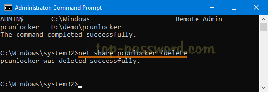- 要停止共享文件夹,请输入以下命令并点击Enter。