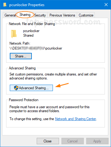 - 去分享标签,然后单击“高级分享“ 按钮。