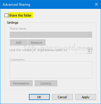- 取消选中盒子”共享此文件夹”然后单击好的。