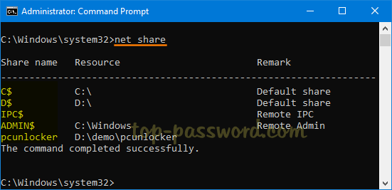 - 运行“净分享”命令列出您通过本地网络共享的所有文件夹。