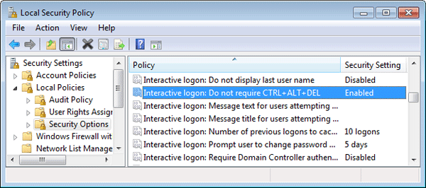 - 在右侧窗格中,双击交互式登录:不需要 CTRL+ALT+DEL。