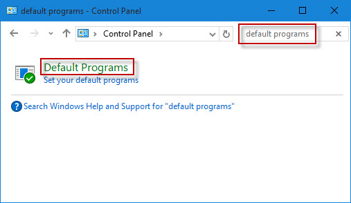 步骤 1:打开 Windows 10 控制面板,然后键入默认程序在搜索框中,然后单击默认程序链接出现在面板上。